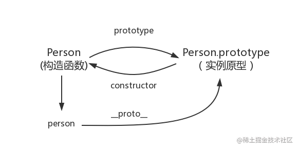 当获取 person.constructor 时,其实 person 中并没有 constructor 属性,当不能读取到constructor 属性时,会从 person 的原型也就是 Person.prototype 中读取,正好原型中有该属性,所以: