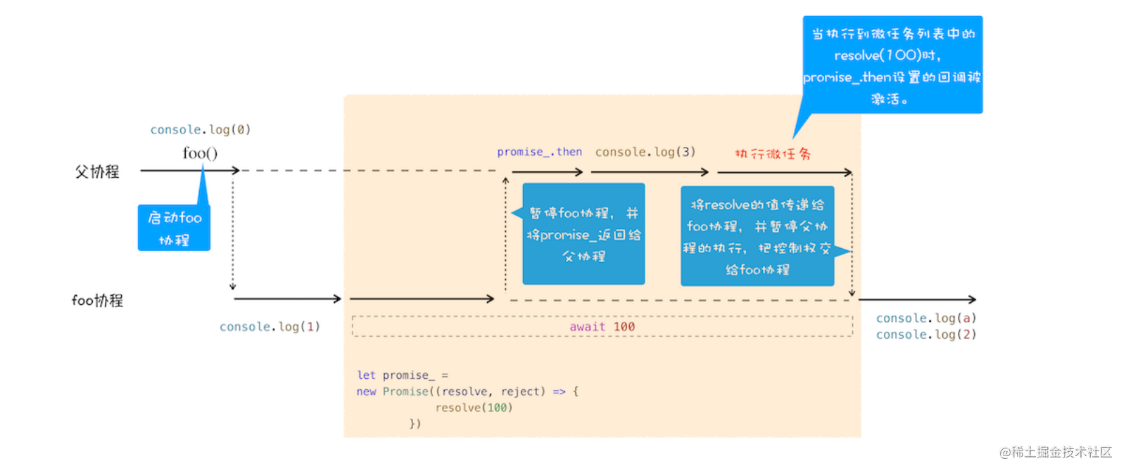 let a = await 100,这里是我们分析的重点J,avaScript 引擎在背后为我们默默做了太多的事情: