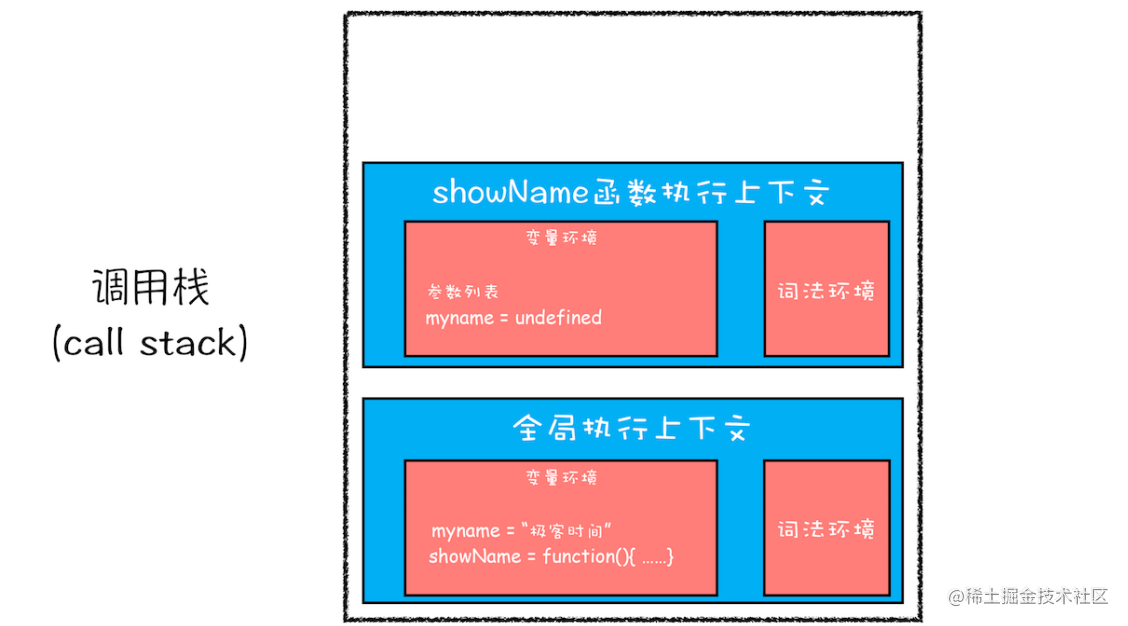 最后补充一点:箭头函数在执行时比块级作用域的内容多,比函数执行上下文的内容少,砍掉了很多函数执行上下文中的组件(比如this),不过在箭头函数在执行时也是有变量环境的,因为还要支持变量提升。