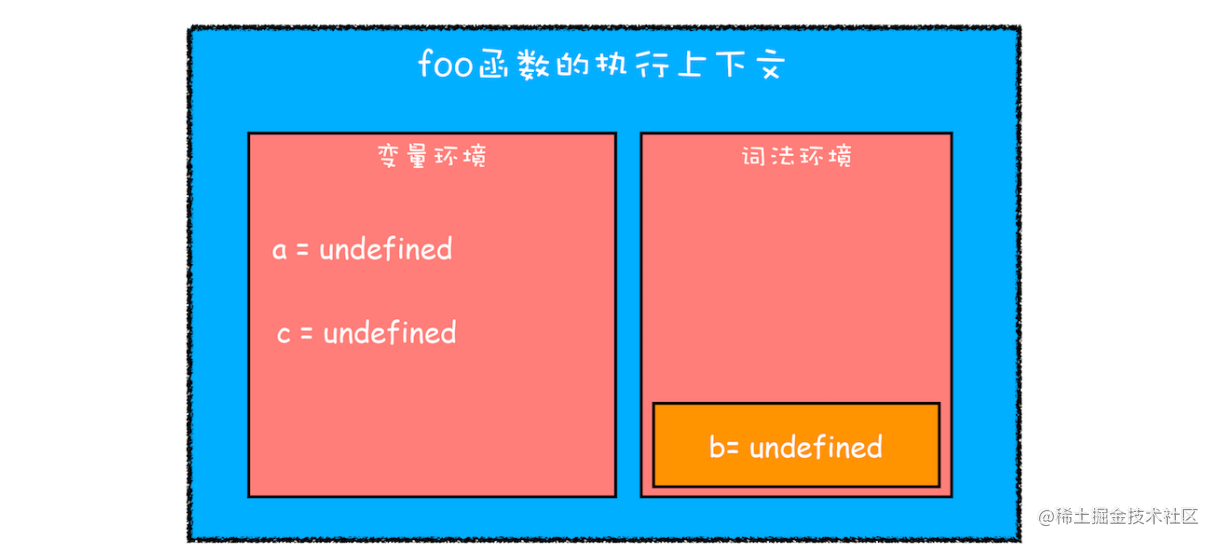 - 在函数的作用域内部,通过 let 声明的变量并没有被存放到词法环境中。